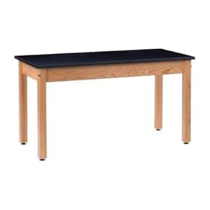 Circular tables for team cooperation / group work and black science room tables for individual work .